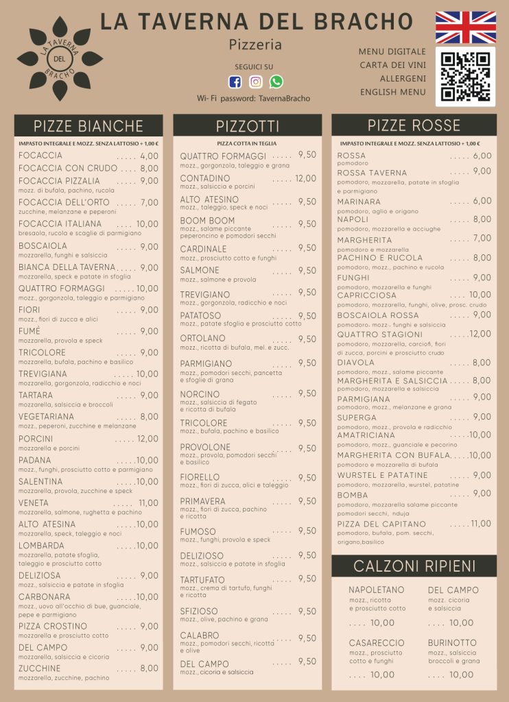 - Rossa Taverna (pom., mozzarella, patate in sfoglia e parmigiano) € 8,50